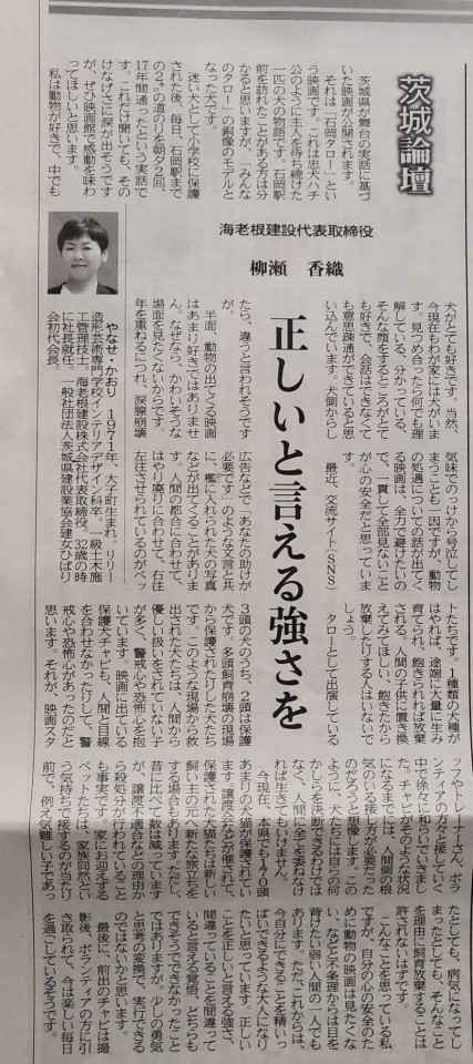 映画「石岡タロー」は、子犬の頃の飼い主(少女)への愛と忠誠心を貫いた犬の一生を描いた実話だ。茨城県での先行上映では、来場者数1万人を突破。多くの映画賞を受賞し、東京での上映が決まった。石岡出身の先輩から「タローは、私が小学生の頃、学校全体で世話をした犬だった」と伺い、私は、学校で育ったタローのことをもっと知りたくなった。厚手のハンカチを持っていざ映画館へ・・・。